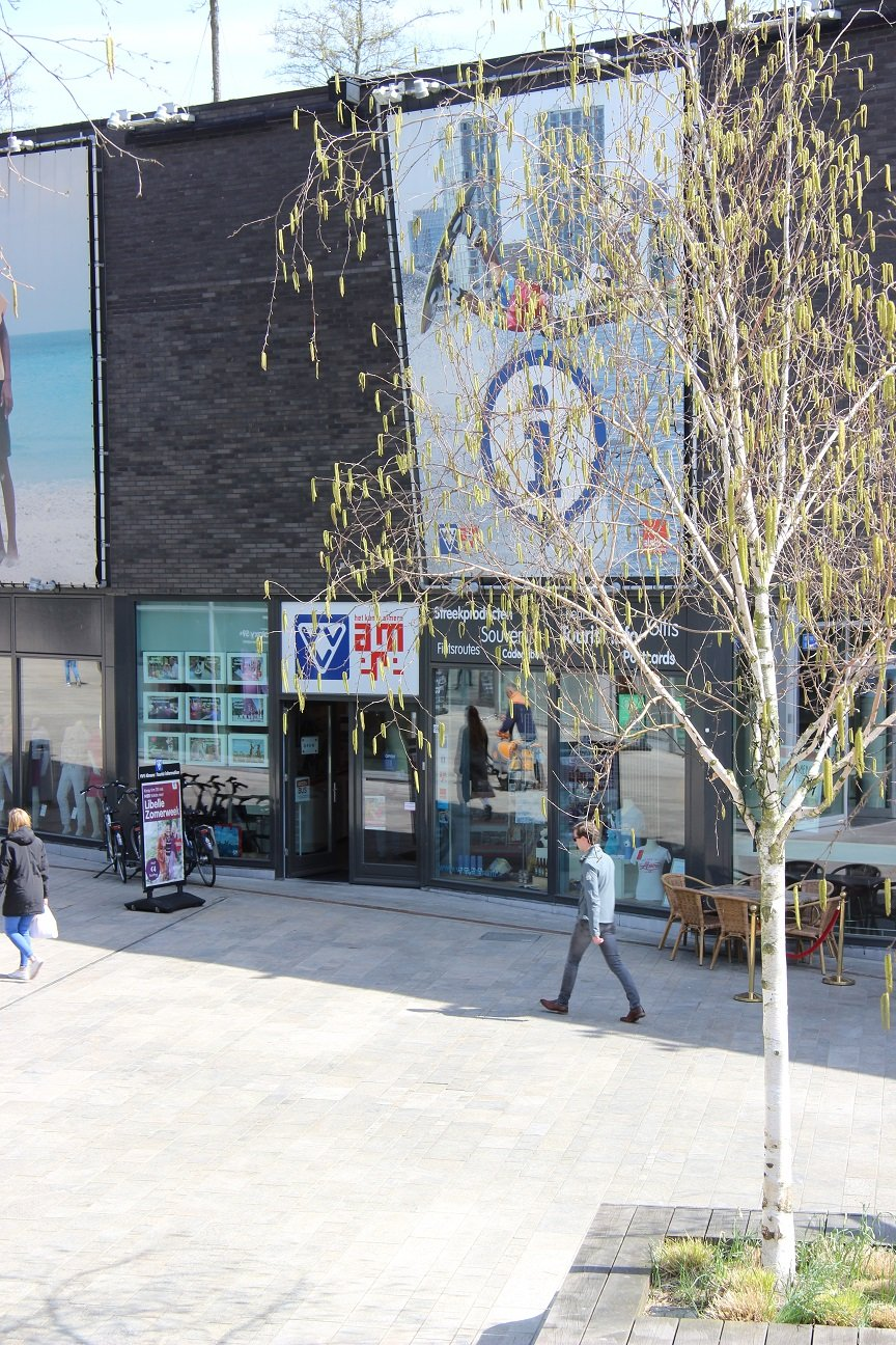 om de toeristische info via Visit Almere te vinden. In de winkel (zie foto hier linksonder) is heel veel te koop over Almere: o.a. mooie boeken over de architectuur/geschiedenis/natuur of plattegronden, prachtige natuurwandelingen, Architectuurwandelingen, prachtige fietsroutes